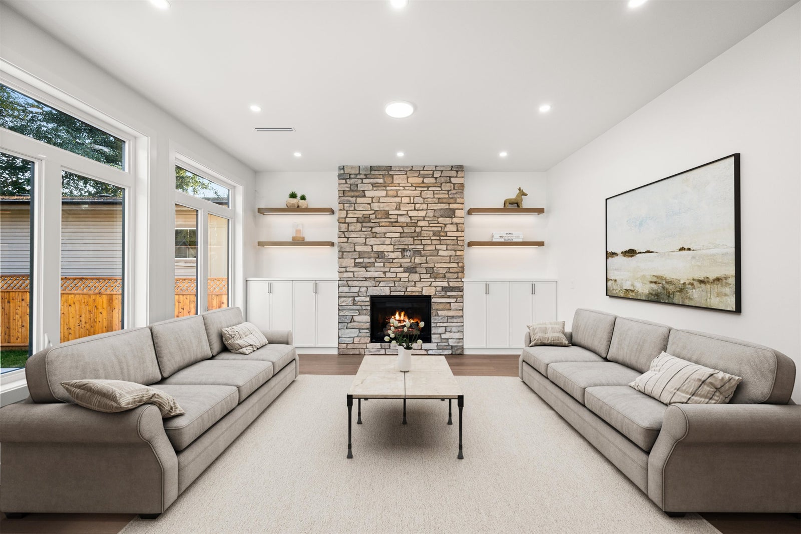 Modern 2 storey farmhouse in Brookswood, 4,722 sqft of luxurious living space, 7 beds + 7 baths, on 8,712 sqft north-facing lot. Open concept layout w/vaulted ceilings & gas F/P in living room, dining room w/butler’s pantry, & massive family room w/gas F/P & built-in entertainment unit. Chef’s dream kitchen w/quartz countertops, 66-inch fridge/freezer, large waterfall island w/eating area, ample cabinetry & spacious spice kitchen. Main floor bedroom w/walk-in closet & ensuite or can be office. Upstairs features 4 beds + 4 baths: large master bedroom w/large walk in closet & spa-like ensuite w/jetted shower & tub, 3 bedrooms w/walk-in closets & ensuites + huge rec room w/wet bar & bonus loft. Legal 2-bedroom airconditioned side suite, heat pump, sprinklers, hardwood floors & 8 cars parking!